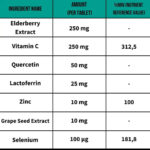 Black Elderberry Extract, Vitamin C, Quercetin, Lactoferrin (Inferrin), Zinc, Grape Seed Extract, Selenium.