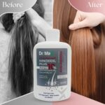 - Protein : – Proteins help strengthen the hair shaft, repairing damaged strands, improving elasticity, and reducing breakage.Regular protein use can give hair a thicker, more voluminous appearance, making it look fuller. They can also lock in moisture, making hair smoother and more manageable