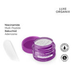 Luxe Organix Retinol Radiance Overnight Glow Botox Lifting Moisturizer is a rich and nourishing moisturizer that is formulated with Retinol, which helps to reduce the appearance of fine lines and wrinkles while gently renewing the skin, leaving you with a youthful glow. With additional benefits from Panthenol, Bakuchiol, and a blenc of multi-Peptides, it helps protect and soothe the skin barrier while locking in moisture all night.