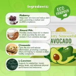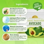 Hydrolyzed Marine Collagen, Reduced L-Glutathione, Avocado Fruit Extract, Panax Ginseng, Aloe Vera, Ganoderma, Sage, Turmeric, Mulberry, Almond Milk, Chamomile, L-Carnitine.