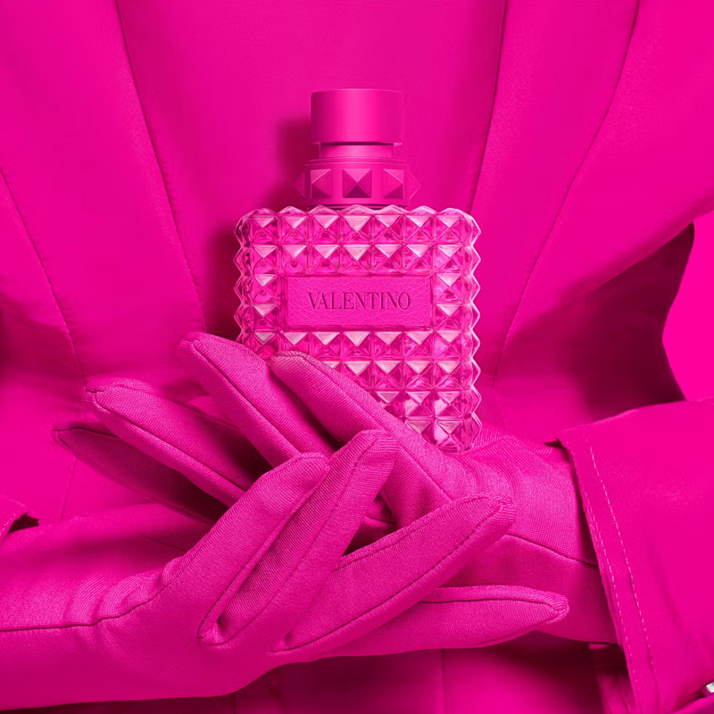 “In 2023, you are welcomed to the Valentino monochromatic world, inspired by the iconic Pink PP. Born in Roma Pink PP is a dazzling floral-ambery fragrance that brings the vibrance alive on your skin. A magnetic note that blends vibrant Madagascar Bourbon vanilla and magnificent orange blossom accords.